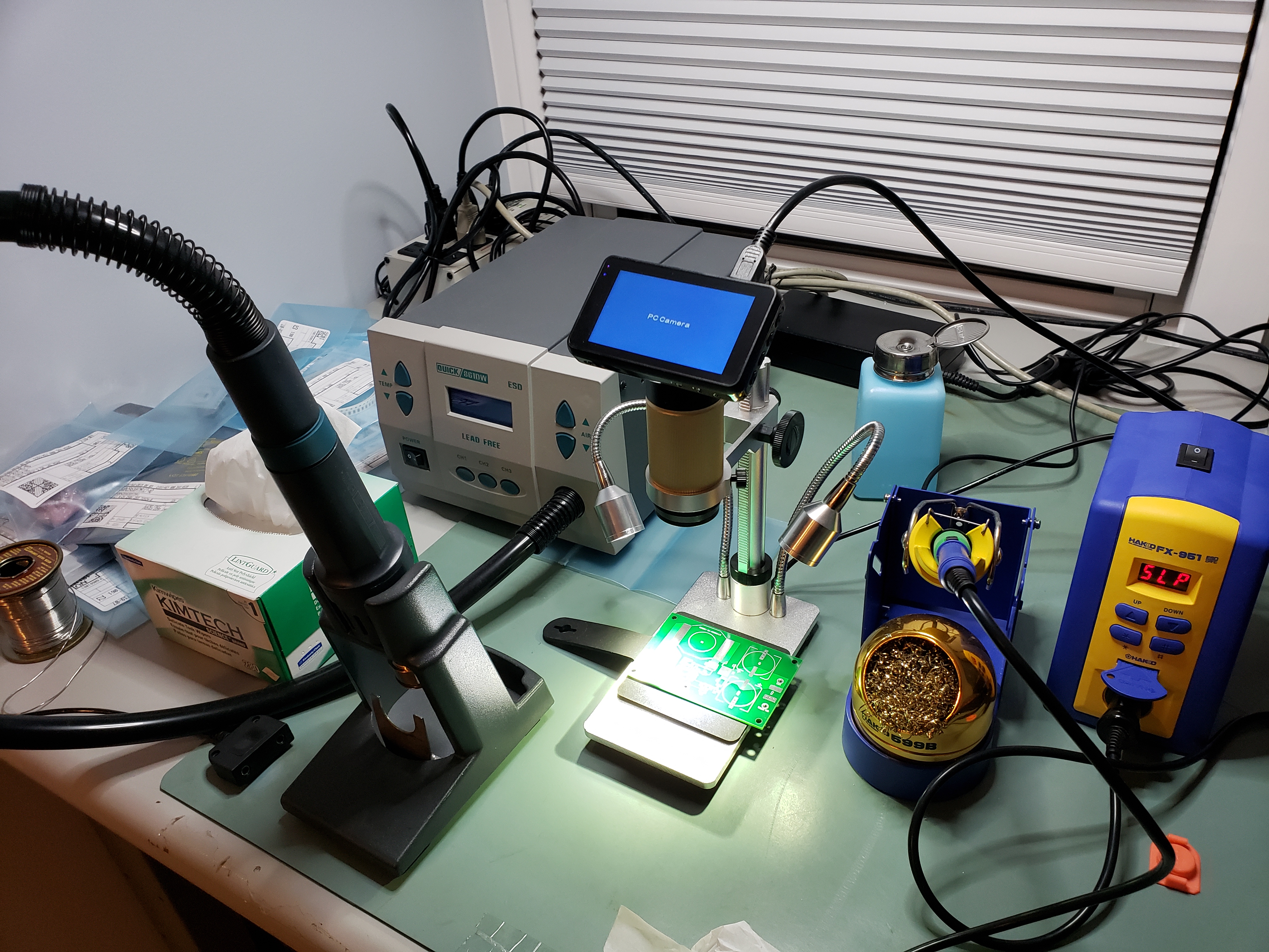 Using hot air rework and a microscope.