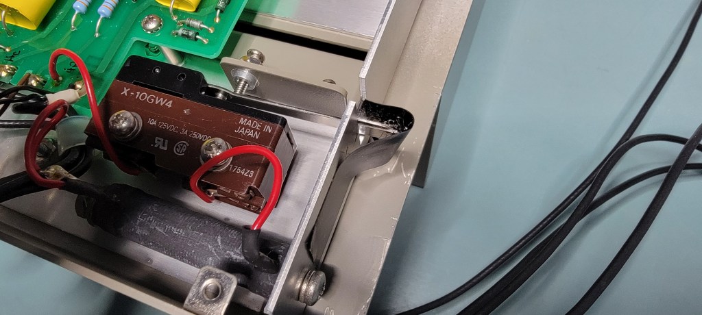 Looks like some modifications were made by the previous owner however. Note that there is some strategically placed electrical tape on the safety interlock switch and DUT discharge mechanism…
