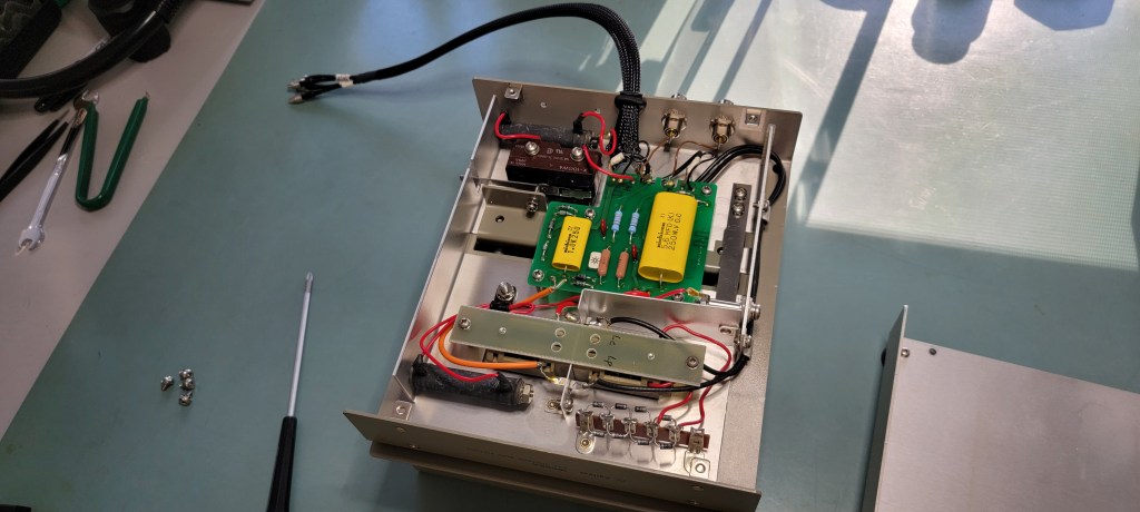 Safety third! Well, to be fair, if it was operating at low (< 30) DC bias in the previous application then the risk of electrocution is low. I suppose the last guy found the interlock and discharge mechanism annoying. What I don’t understand is why the coax connections across the low terminals were chopped and moved back to the diode array which blocks DC on the low side and keeps discharges flowing in one direction.