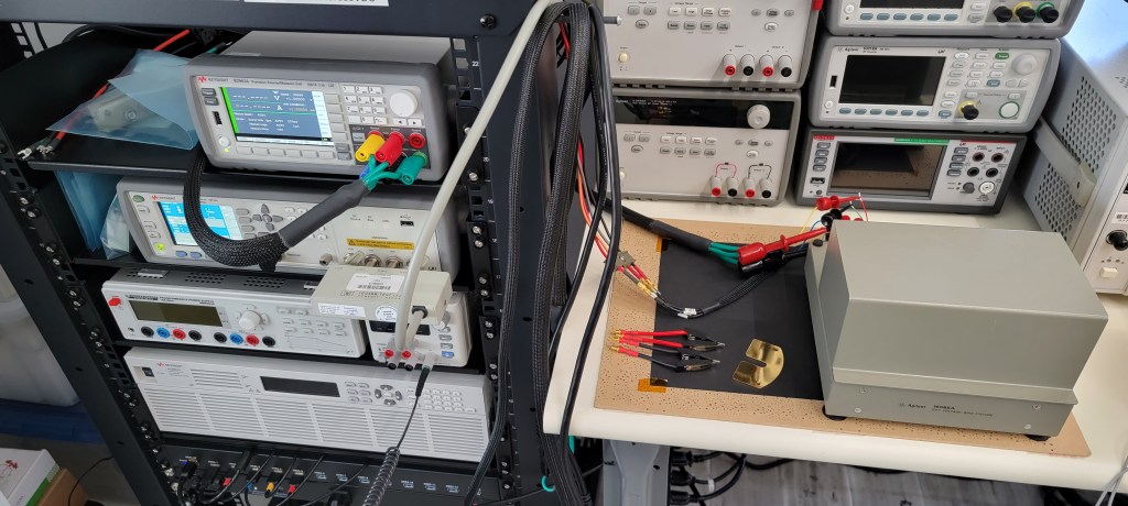 Now that the fixture is restored to it’s (mostly) original condition, we are ready to do some tests. Before I attached it to my LCR meter, I made sure to apply the DC bias first (up to 200 volts) and make sure that the DC did not pass to any of the SMC connectors which connect to the LCR meter itself. I also verified that the interlock was operating correctly (no DC at the DUT when opened).
