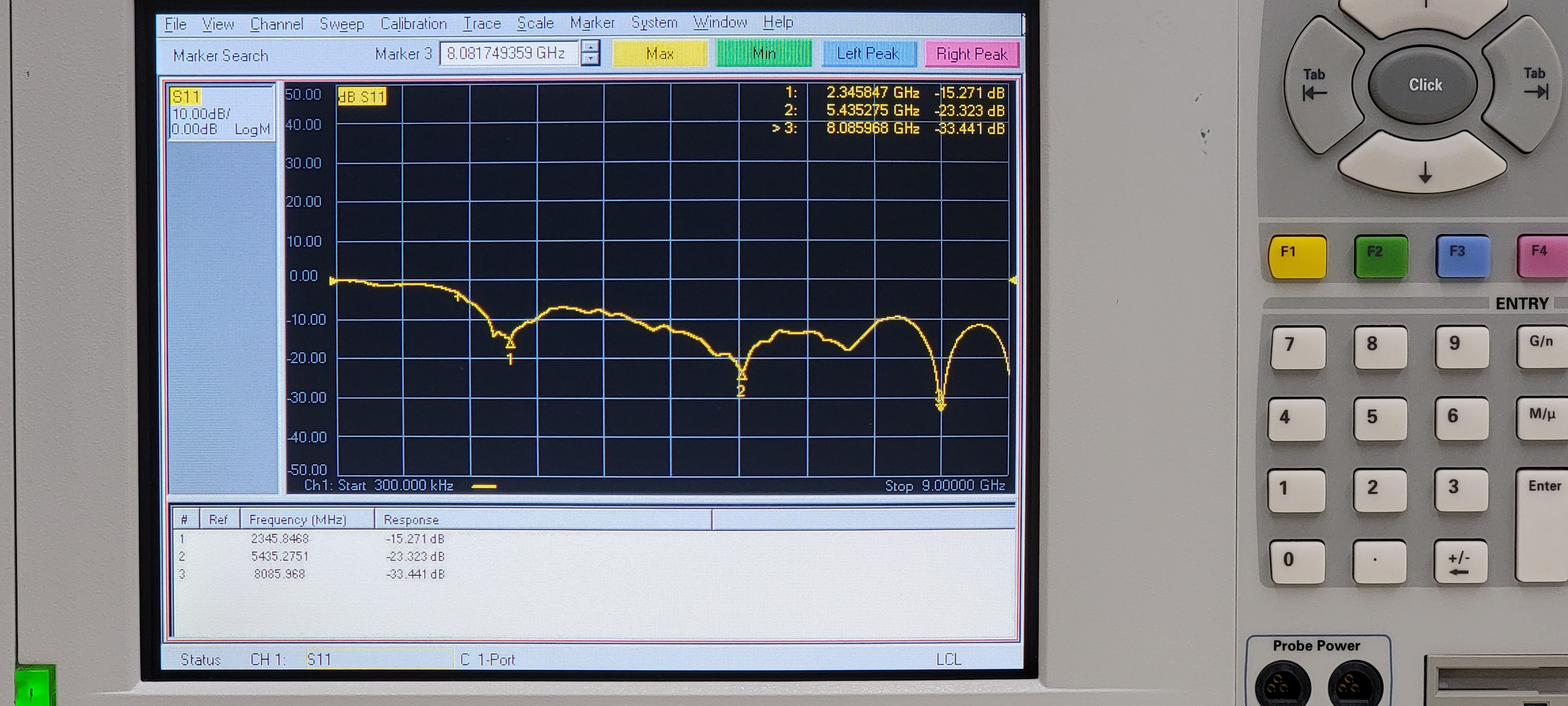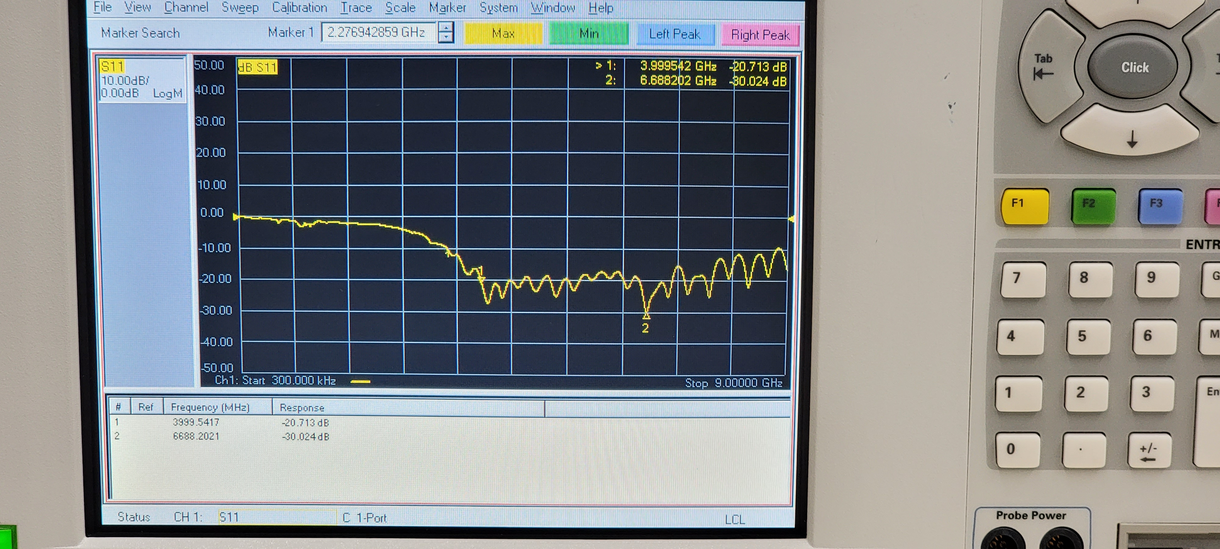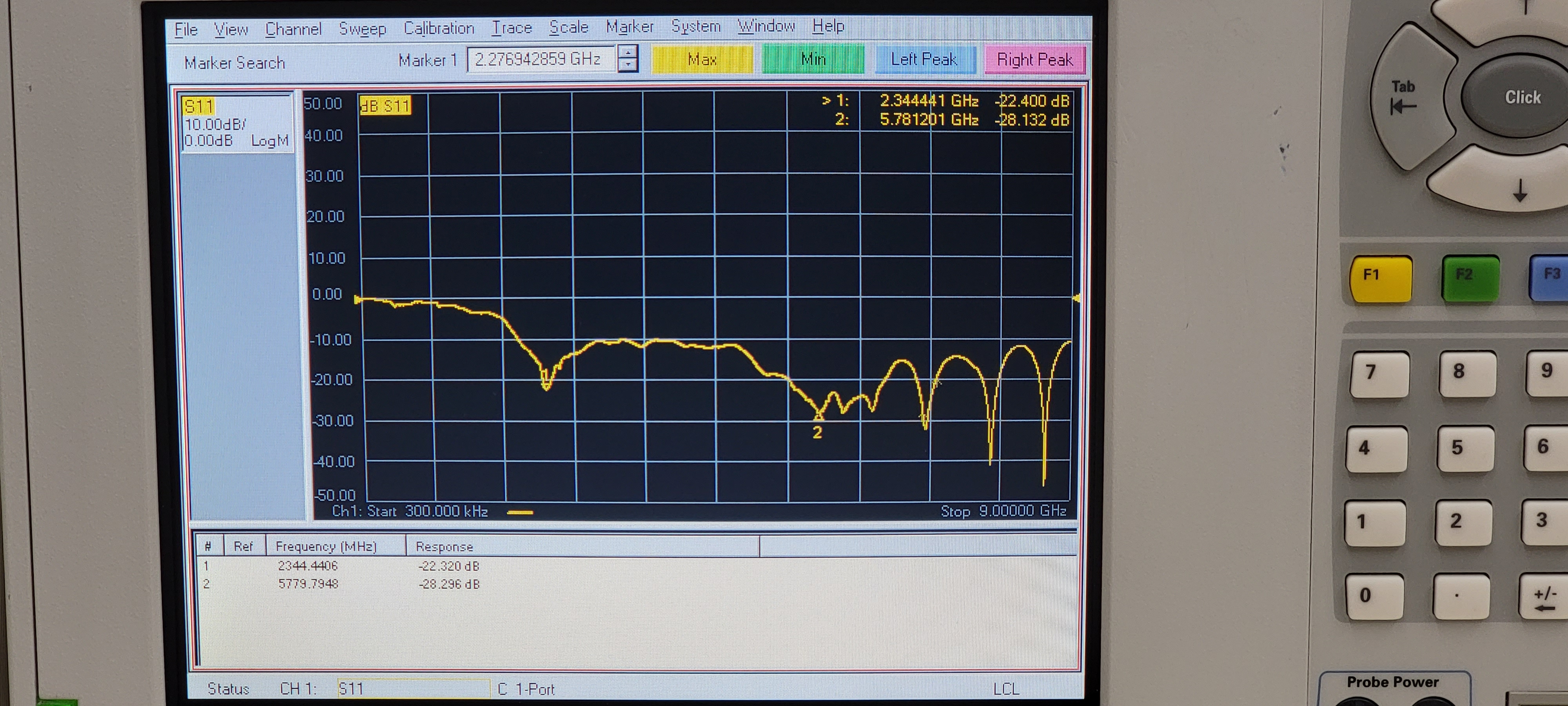 For funsies, I decided to do some return loss measurements on the 7 antennas in the mast assembly. Based on the hardware, we expect to see 3 antennas that are dual 2.4/5 GHz and 4 antennas that are for 5+ GHz operation.