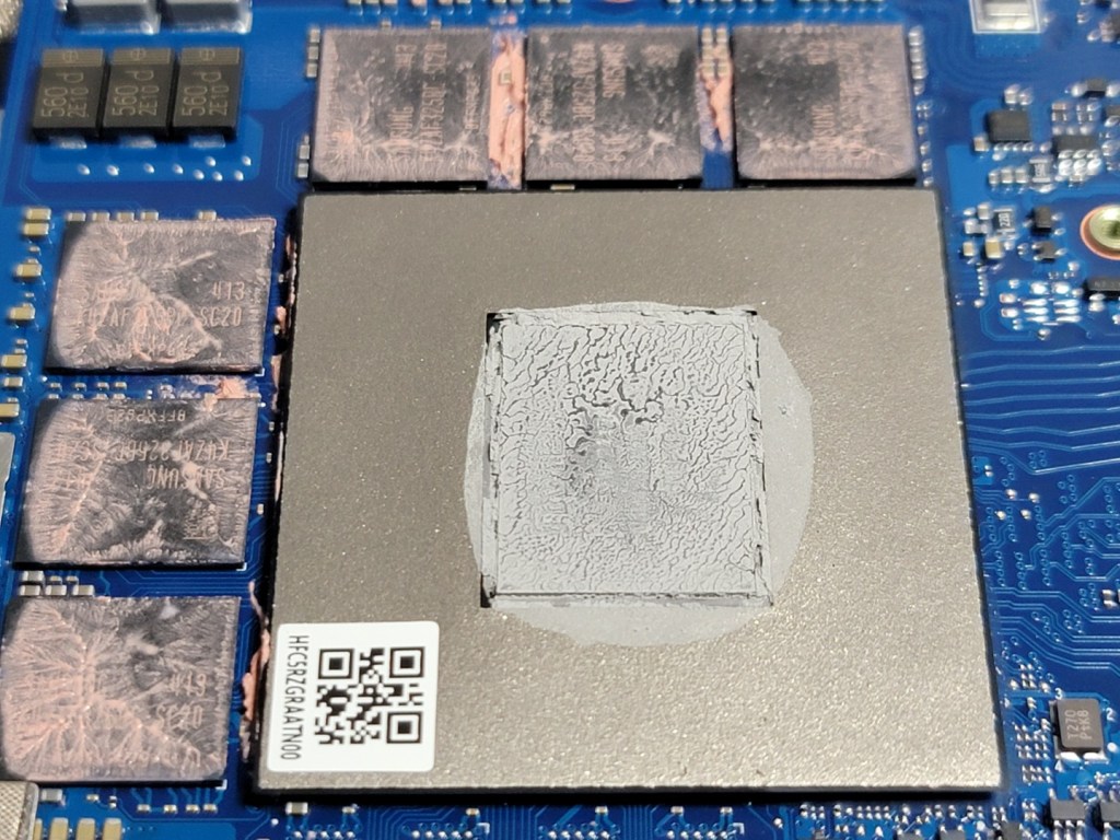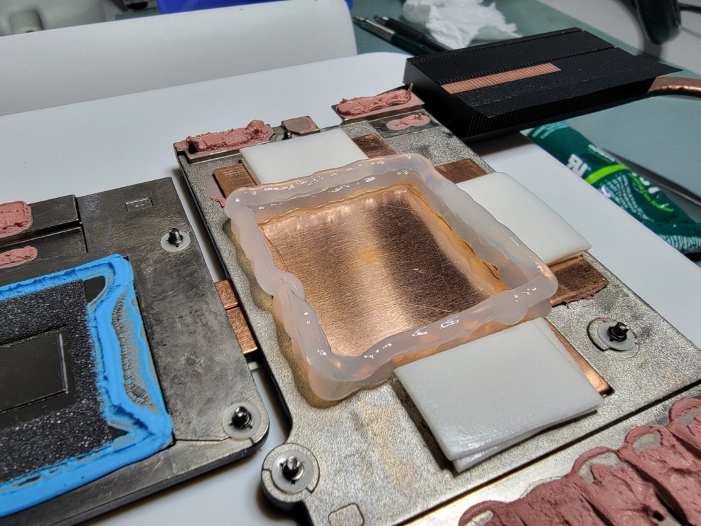 It’s pretty obvious that I used WAY too much S-Putty. This stuff is quite viscous, and laptop heatsinks are already known for their abysmal mounting pressure. I was sure that the GPU (and also CPU) die did not have good mounting pressure due to the thick putty.