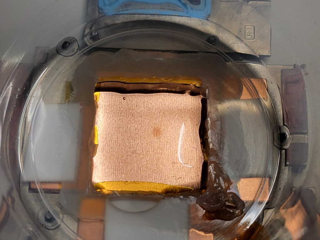 Further research indicated that factory liquid metal applications can be hit or miss. Dry spots such as this are not uncommon: