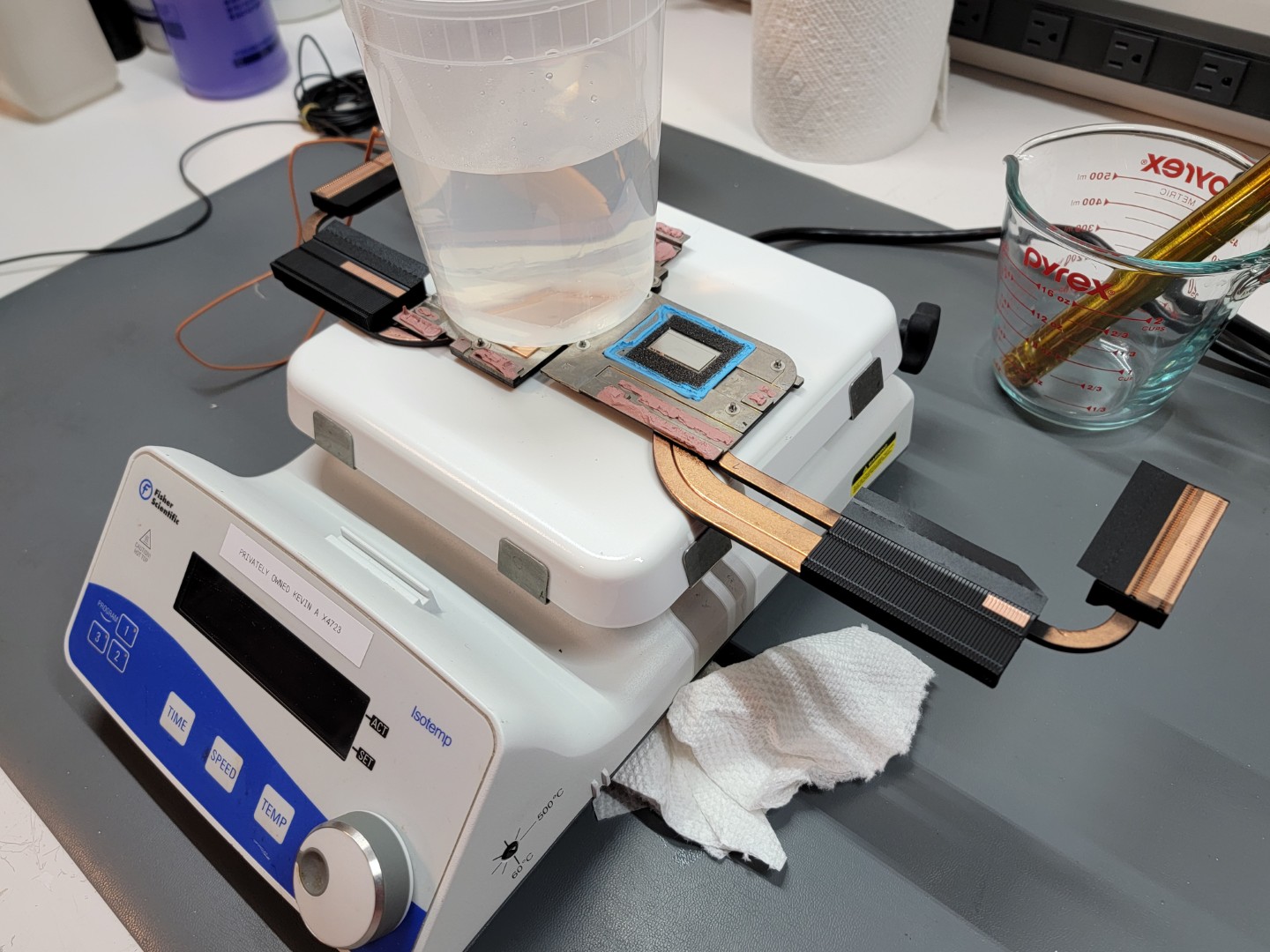 The challenge becomes: how do I contain the plating bath around the GPU heatsink, and apply enough heat to the heatsink and solution to sustain plating?